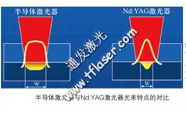 從上圖我們可以看出半導(dǎo)體激光器在焦點前后的光束發(fā)散明顯小于YAG激光器。