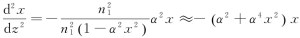 將自聚焦光纖內(nèi)的傍軸光線再分成近軸光線和遠(yuǎn)軸光線。所謂近軸光線就是擺動(dòng)的光線離軸線不遠(yuǎn),即α2x2?1,可以有近似則式可以近似成