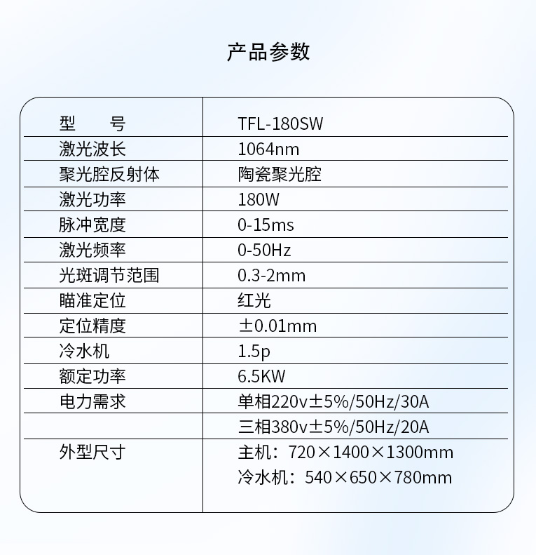 通發(fā)激光TFL-180SW振鏡式激光焊接機(jī),采用2軸高速掃描振鏡,焊接速度是工作臺(tái)移動(dòng)的5倍,滿足0.5mm以內(nèi)料厚不銹鋼多點(diǎn)擊穿疊加焊接,也適用手機(jī)五金不銹鋼螺柱高速激光焊接加工。