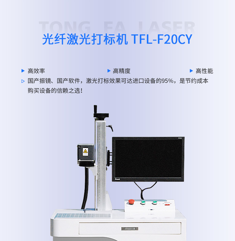 通發(fā)激光研發(fā)TFL-F20CY激光打標(biāo)機,金屬材料和塑膠材料都進(jìn)行打標(biāo)加工,本激光鐳雕機配置成熟的20W和30W國產(chǎn)光纖激光器,國產(chǎn)振鏡、國產(chǎn)軟件,性價比高,激光打標(biāo)效果可達(dá)進(jìn)口設(shè)備的95%,是節(jié)約成本購買設(shè)備的信賴之選!