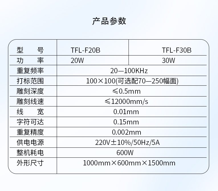 通發(fā)激光研發(fā)的TFL-F20B激光打標機,金屬材質和塑膠材質均可進行打標加工。本激光鐳雕機光纖激光器、振鏡、軟件、聚焦鏡等核心配件采用原裝進口,性能穩(wěn)定,壽命是國產器件的1.5倍,是高端客戶的優(yōu)選。