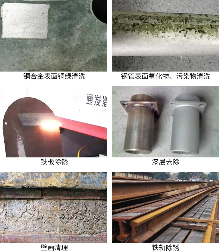 激光清洗具有無(wú)研磨、非接觸特點(diǎn),不但可以用來(lái)清洗有機(jī)的污染物,也可以用來(lái)清洗無(wú)機(jī)物,包括金屬的銹蝕、金屬微粒、灰塵等,應(yīng)用功效包括:除銹、脫漆、去油污、文物修復(fù)、除膠、去涂層、去鍍層。適用于銹層、漆層較厚,油污較深的情況下清潔,以及表面粗糙化、焊縫清潔等工藝環(huán)節(jié),效率極高。應(yīng)用行業(yè):航空、船舶、文物保護(hù)、汽車(chē)周邊、食品行業(yè)、軌道、橡膠模具、其他。